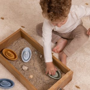 Ahoy kapitein! Maak van badderen het allerleukste moment van de dag met deze superleuke set badbootjes. De vrolijke vloot bestaat uit 4 verschillende kleuren: blauw, lichtblauw, grijs en okergeel en zorgt voor het nodige entertainment in bad. Laat de bootjes door de badkuip drijven, vul ze met water of stapel ze allemaal op elkaar. De kleurrijke badbootjes van Little Dutch prikkelen de verbeelding van je kleintje zowel in het water als op het droge. Afmeting per bootje: 11,5 x 6,3 x 6 cm. Geschikt voor kinderen vanaf 18 maanden.